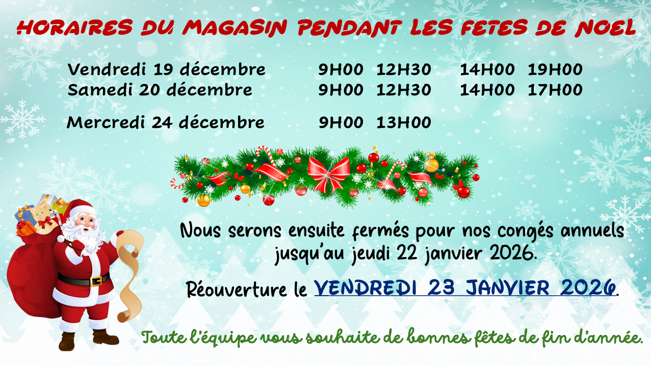 Accueil / Pop-up / FERMETURE DU MAGASIN POUR CONGES / horaires noel 2025