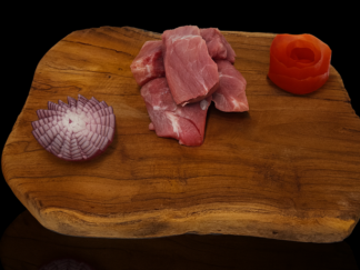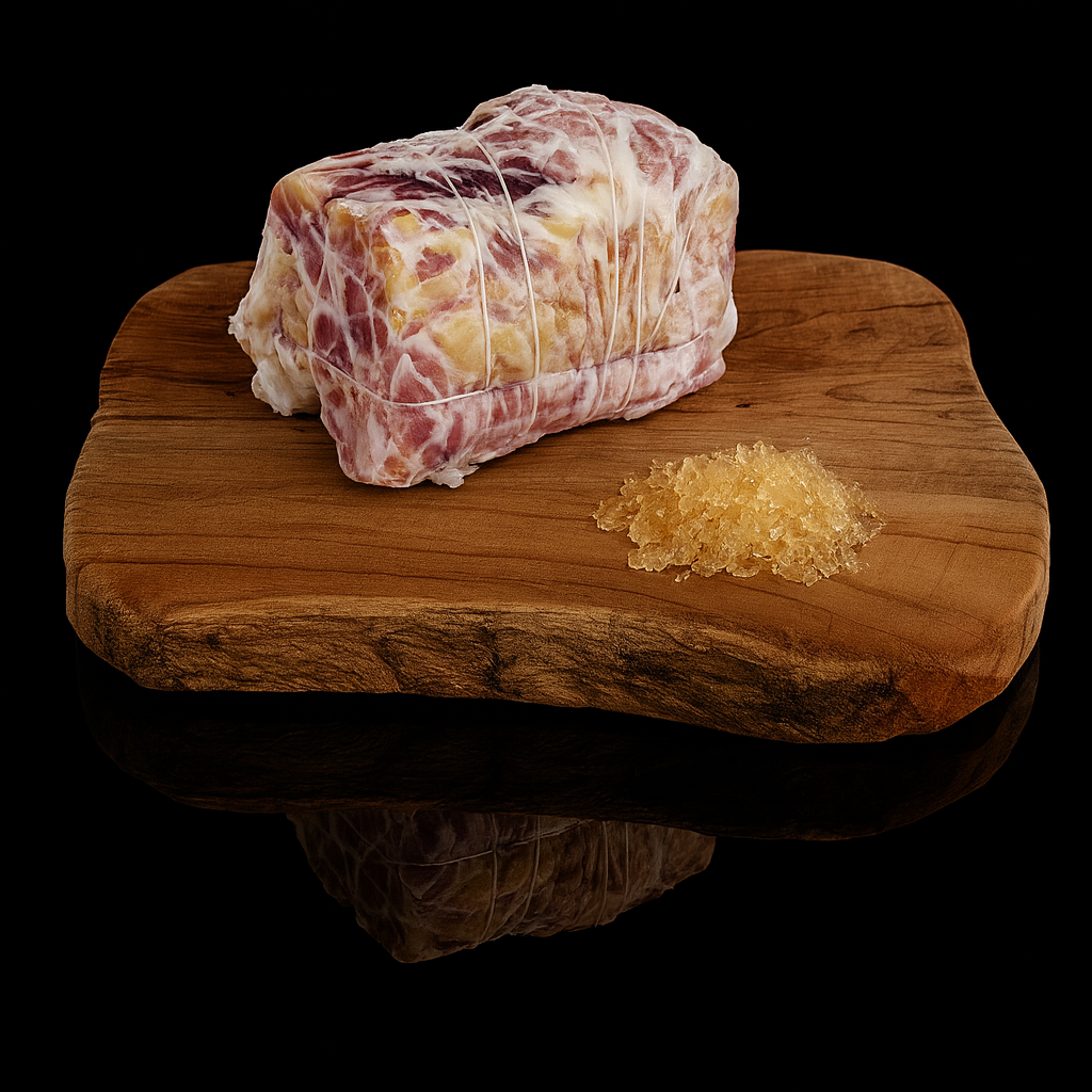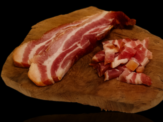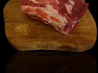 Rôti au neufchâtel, pommes, calva, lardons et champignons.